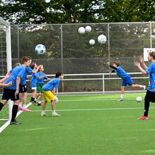 Um Kopfverletzungen wie Gehirnerschütterungen beim Fußball vorzubeugen, ist auch eine gute Technik gefragt. Fabian Klos lässt die Jugendlichen Übungen und Wettspiele machen, bestärkt sie, korrigiert sie und gibt ihnen wertvolle Tipps. Ein solches Training, das praktische und theoretische Anteile verbindet, entspricht genau den Empfehlungen des Deutschen Fußball-Bundes (DFB). Ein Kopfball-Verbot, wie es etwa in England für Kinder unter zwölf Jahren im Training praktiziert wird, hält der DFB für nicht zielführend. Stattdessen soll der Nachwuchs in Deutschland das Kopfballspiel mit altersgemäßen Bällen – also kleineren, leichteren und nicht voll aufgepumpten – erlernen und perfektionieren, um die Verletzungsgefahr im späteren Erwachsenenfußball zu reduzieren.