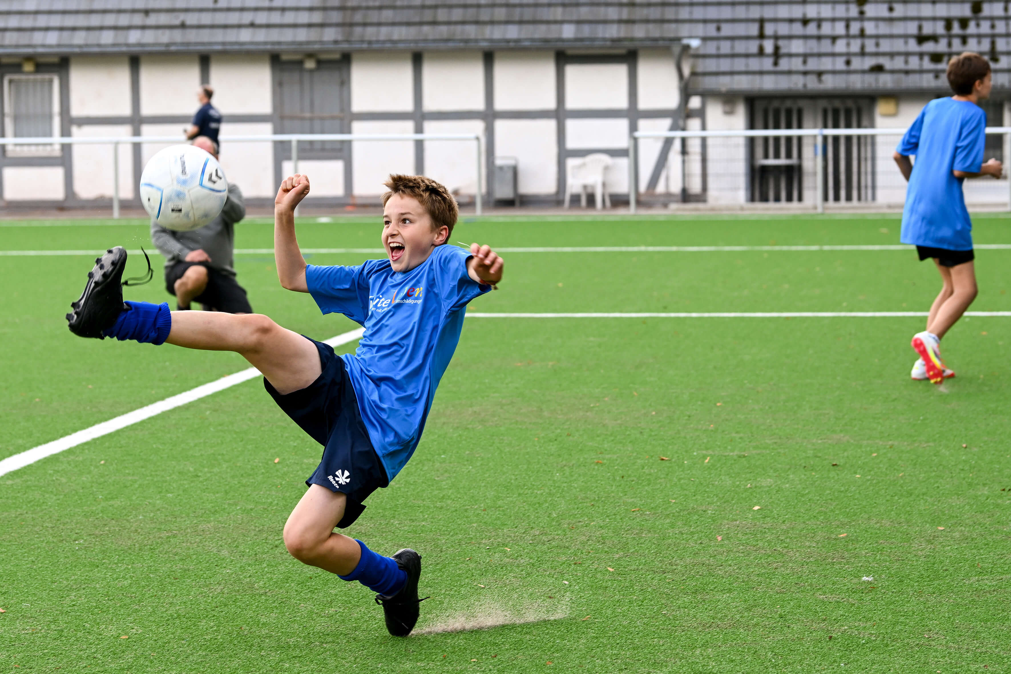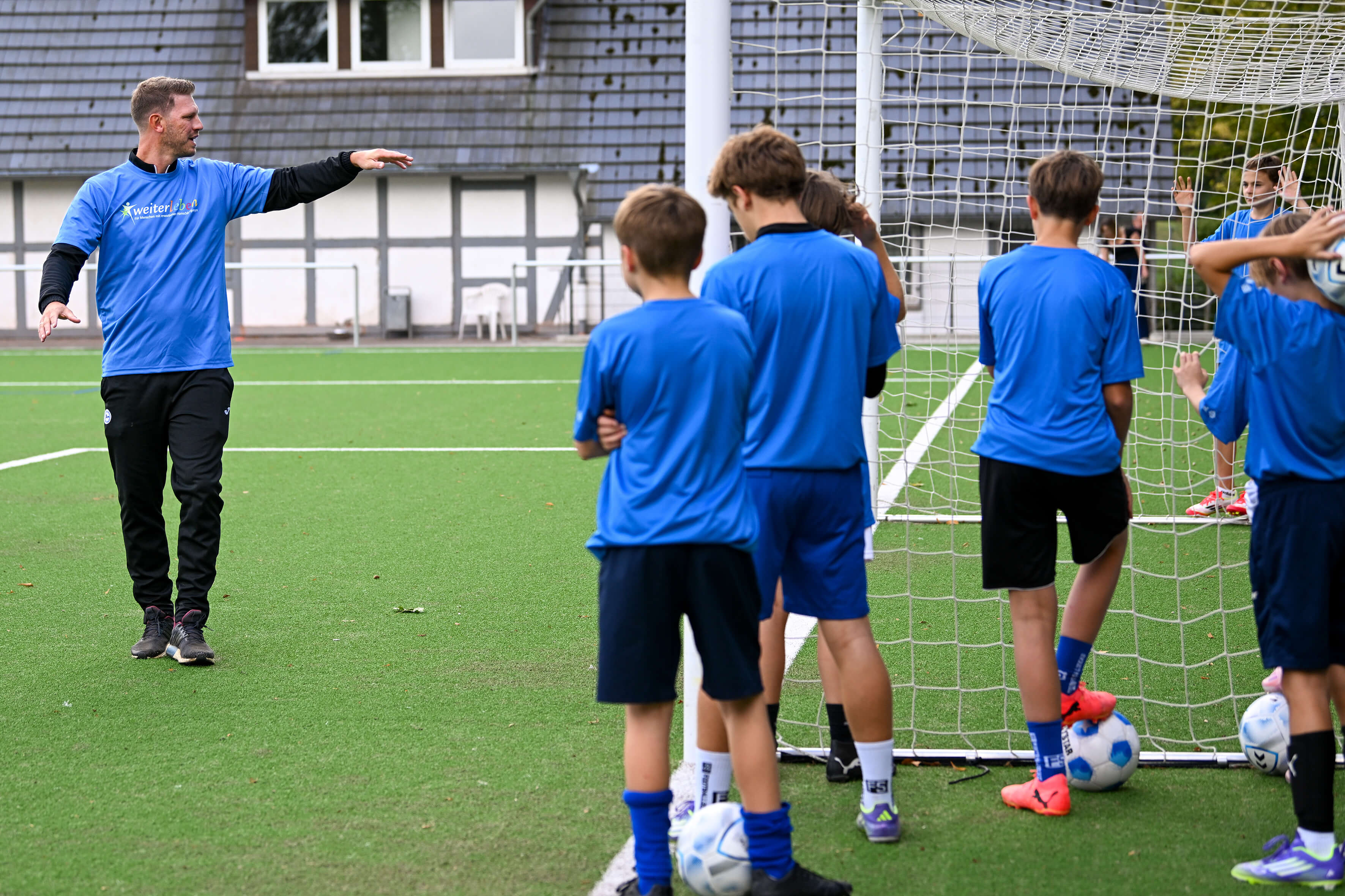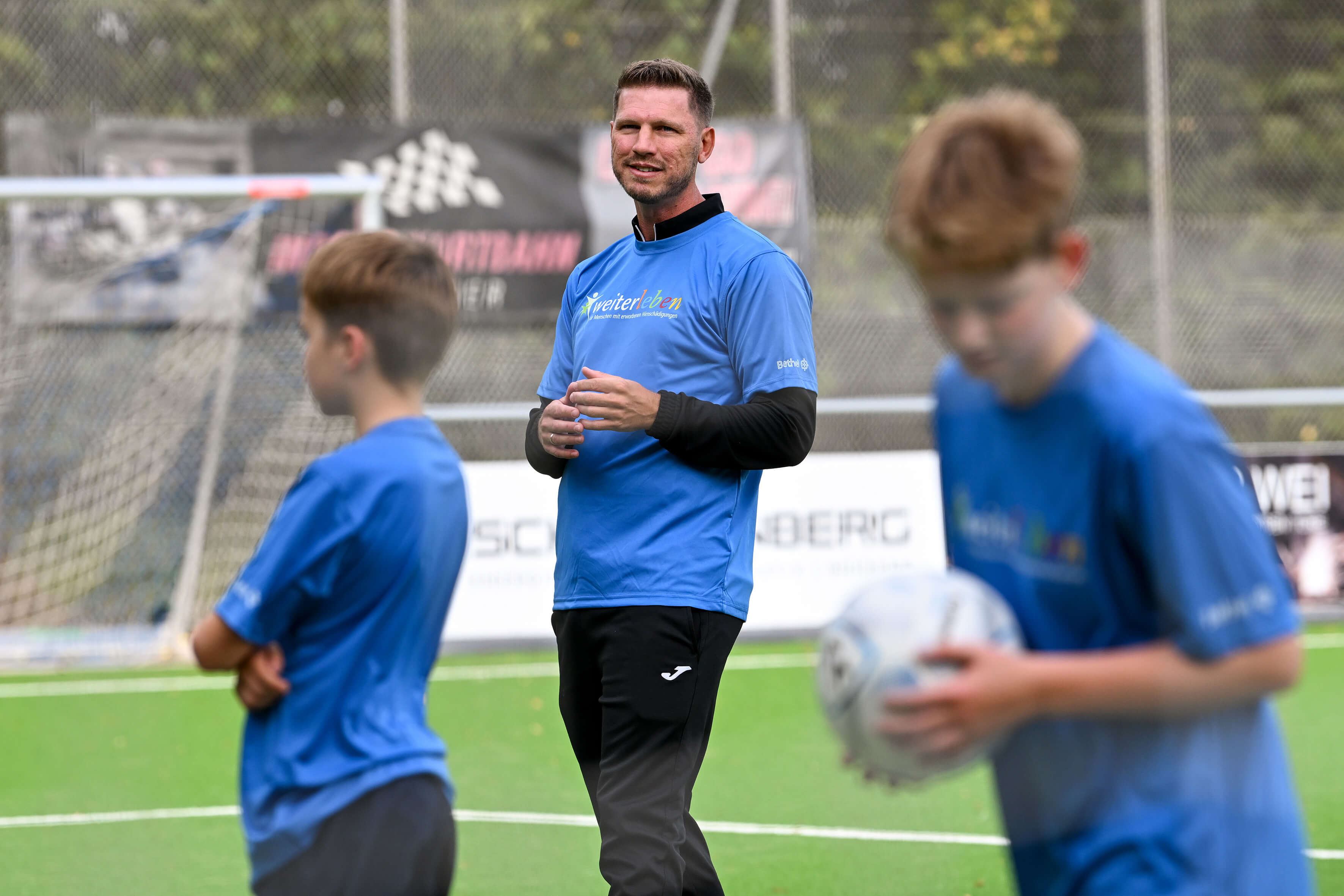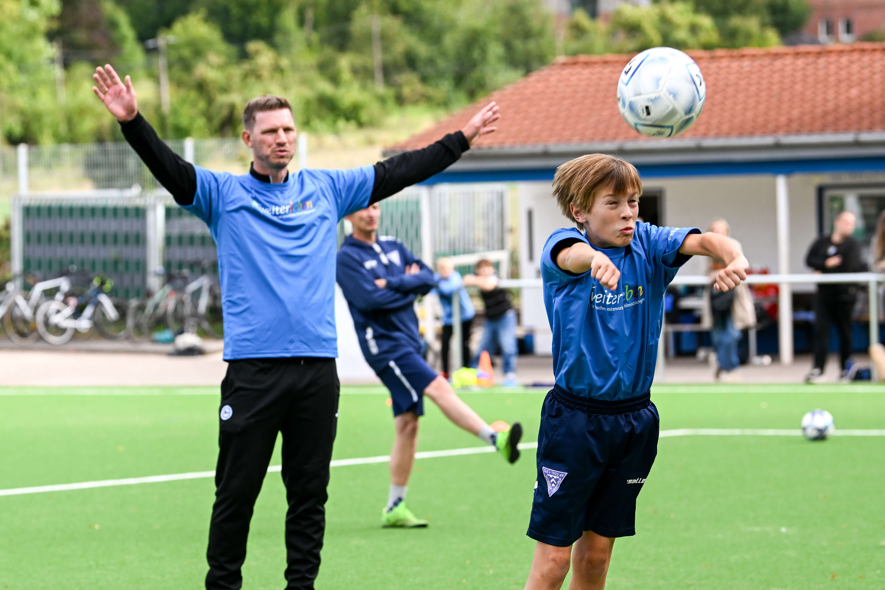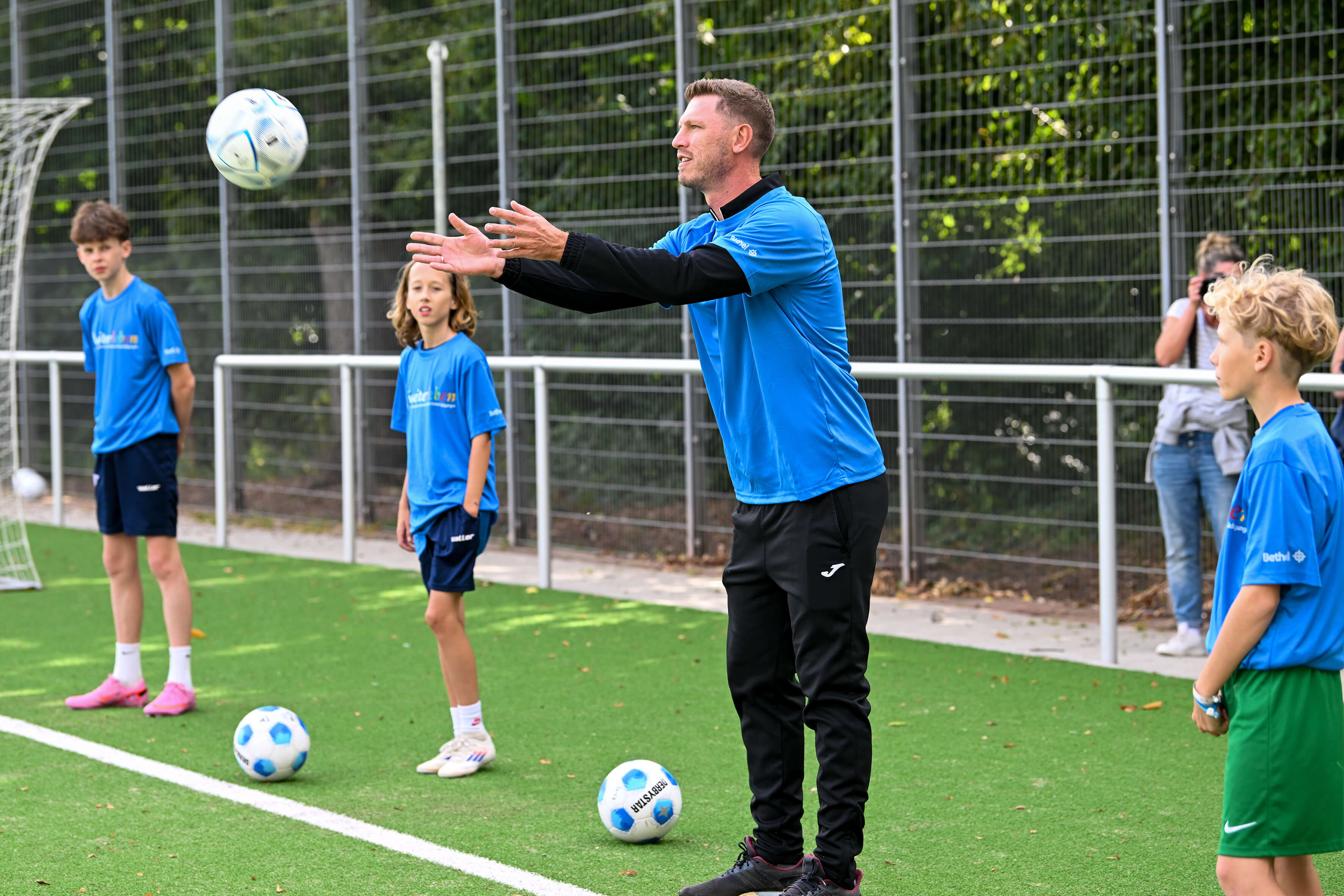„Ihr könnt beim Kopfball auch einfach mal wegbleiben.“ Als Fabian Klos diesen Satz sagt, werden die 20 Nachwuchskicker, die vor ihm stehen, ganz still. „Wie bitte?“, scheinen sich einige von ihnen zu fragen: „Ich soll den Ball nicht mit dem Kopf spielen?“ Einen solchen Satz haben wohl nur die wenigsten von ihnen bislang auf dem Fußballplatz gehört. Aber es stimmt: Ausgerechnet der Rekordtorjäger, der fast ein Drittel seiner 180 Treffer für Arminia Bielefeld mit dem Kopf erzielt hat, empfiehlt ihnen: „Wenn ihr in einer Spielsituation ein ungutes Gefühl habt, bleibt lieber weg, statt euch den Kopf kaputtzumachen.“