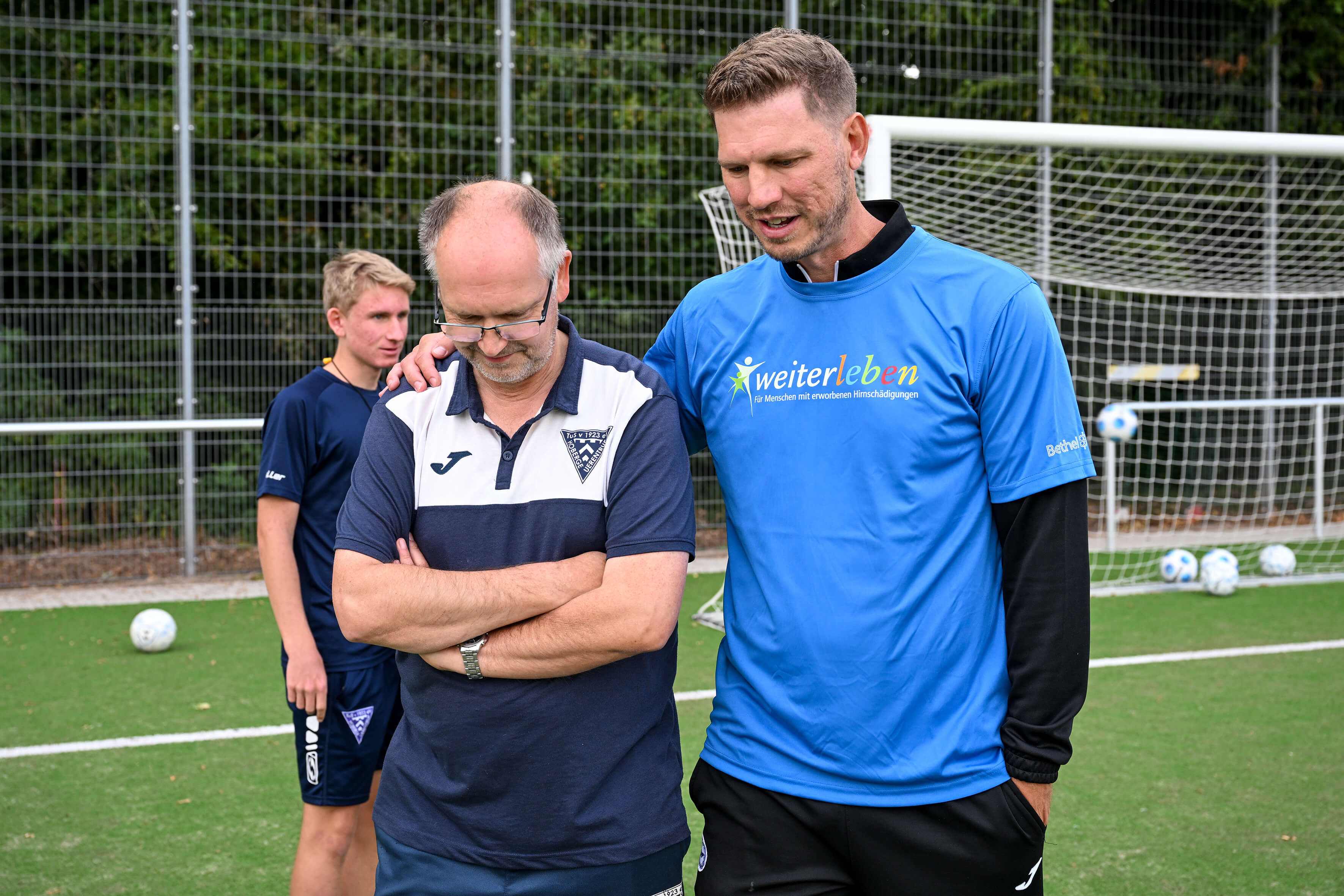 Fabian Klos leitet das Präventionstraining bei der C-Jugend des TuS Hoberge-Uerentrup in Bielefeld in seiner Eigenschaft als Schirmherr der Beratungsstelle „Weiterleben“ der v. Bodelschwinghschen Stiftungen Bethel. „Weiterleben“ bietet Menschen mit erworbenen Hirnschädigungen eine Anlaufstelle sowie qualifizierte Beratung und Unterstützung. Das Angebot richtet sich nicht nur an die Betroffenen selbst und ihre Familien, Freundinnen und Freunde sowie Lehrerinnen und Lehrer, sondern auch an andere soziale Systeme, wie beispielsweise Sportvereine.